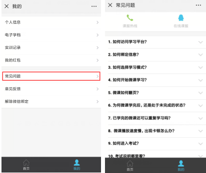 ▶【我的】→【常见问题】,包括课服热线、在线课服、常见问题汇总,汇总内容会不定期更新;